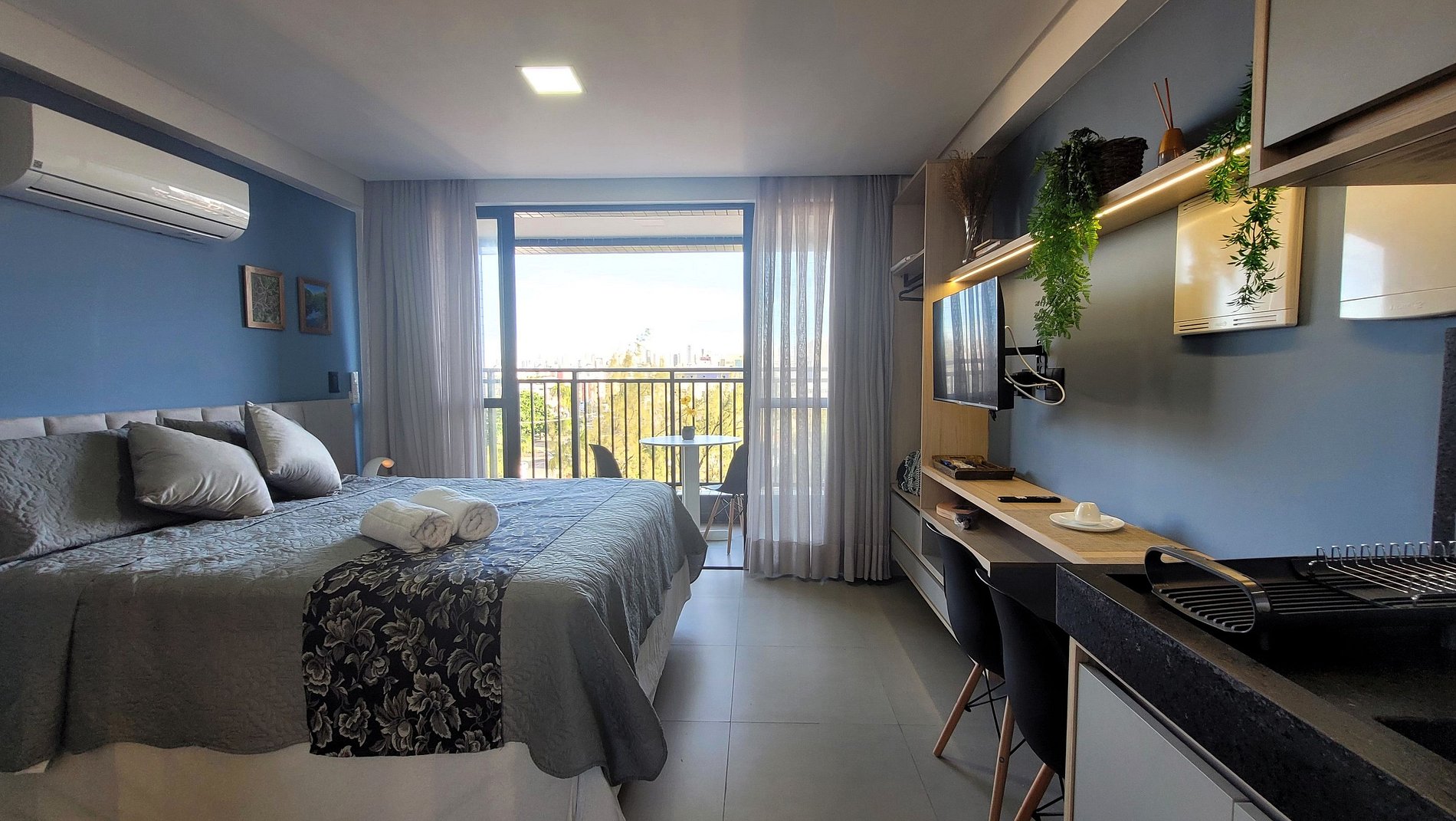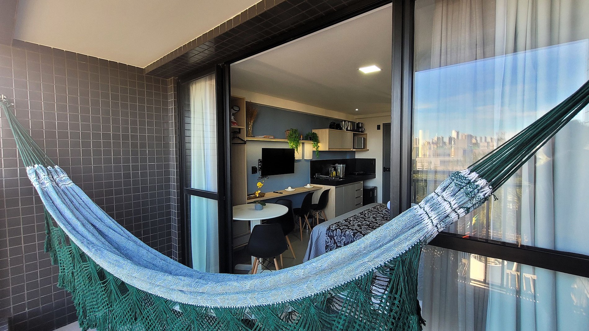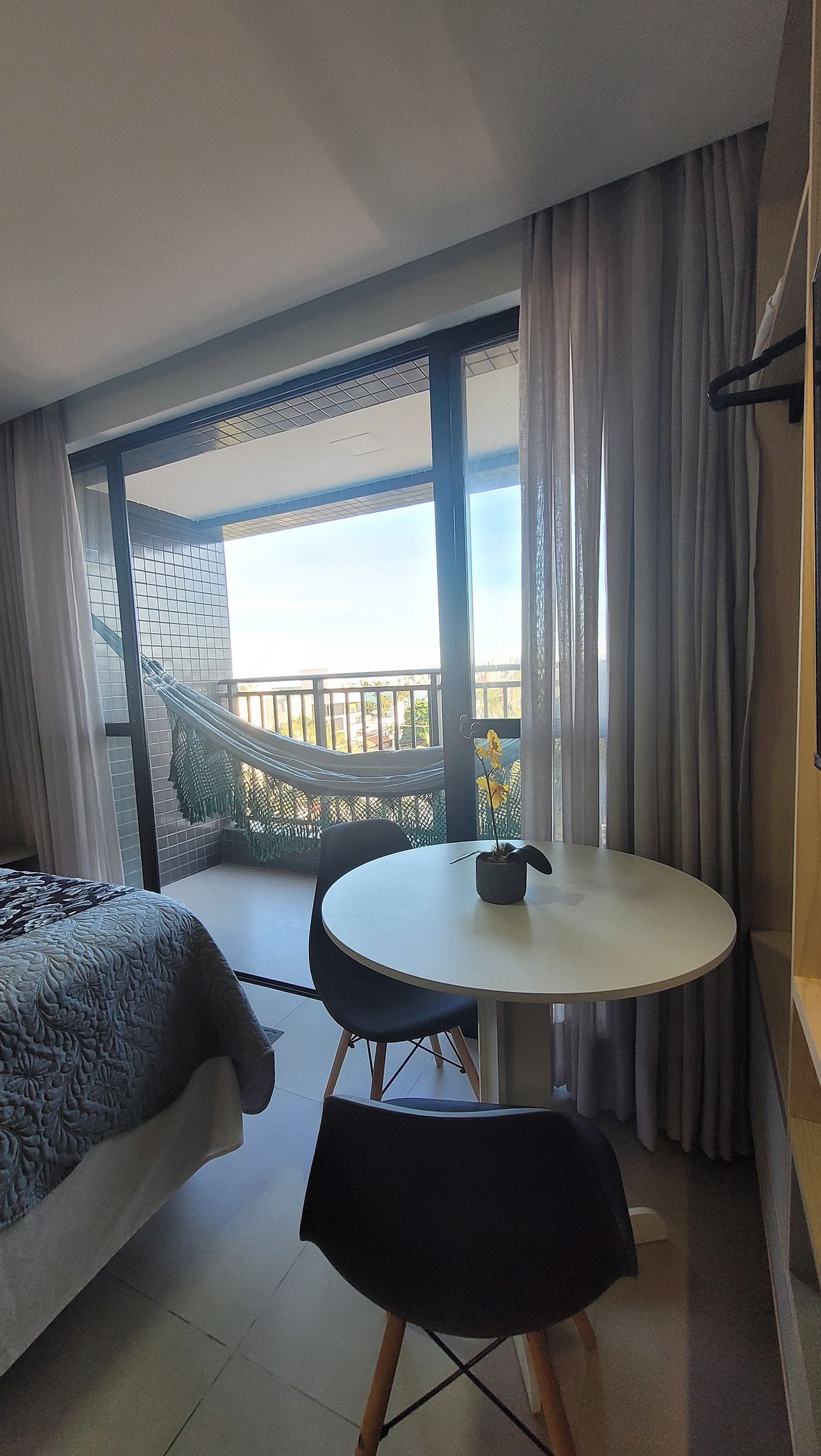 Um espaço moderno e acolhedor, com uma charmosa varanda para aproveitar a paisagem sem pressa. Perfeito para estadias curtas ou longas, oferecendo tudo o que você precisa com conforto e praticidade.
