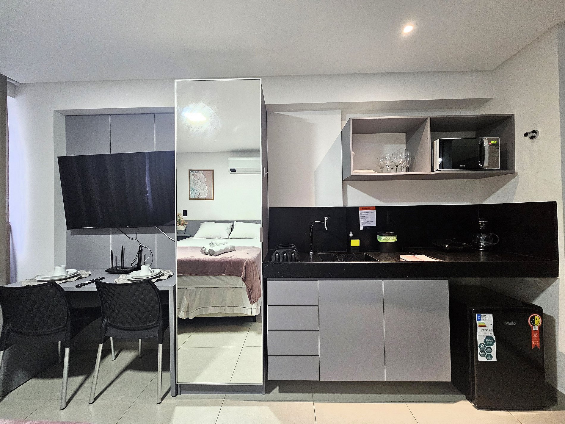 Um espaço funcional e completo, pensado para oferecer conforto e praticidade em qualquer tipo de estadia.