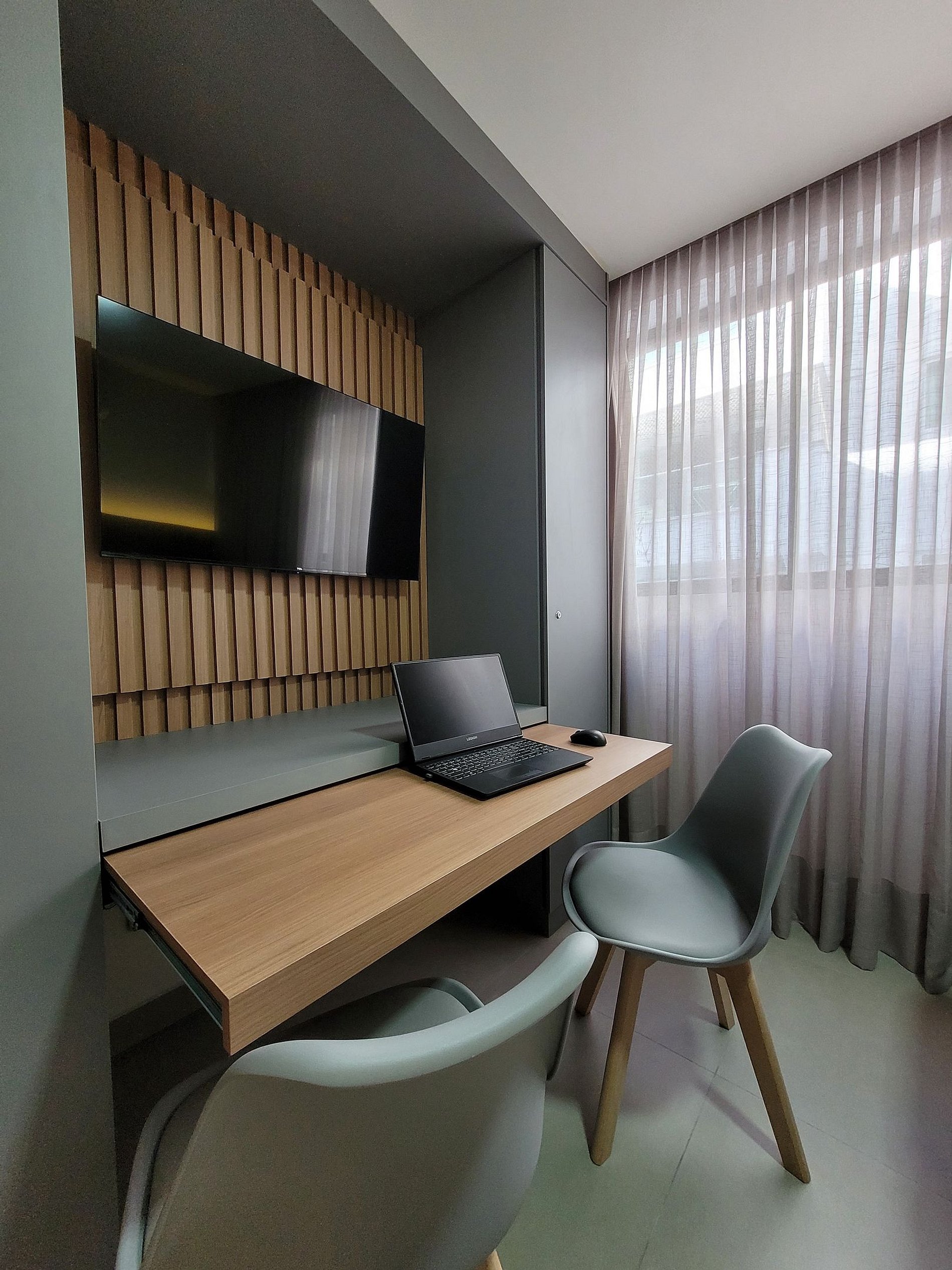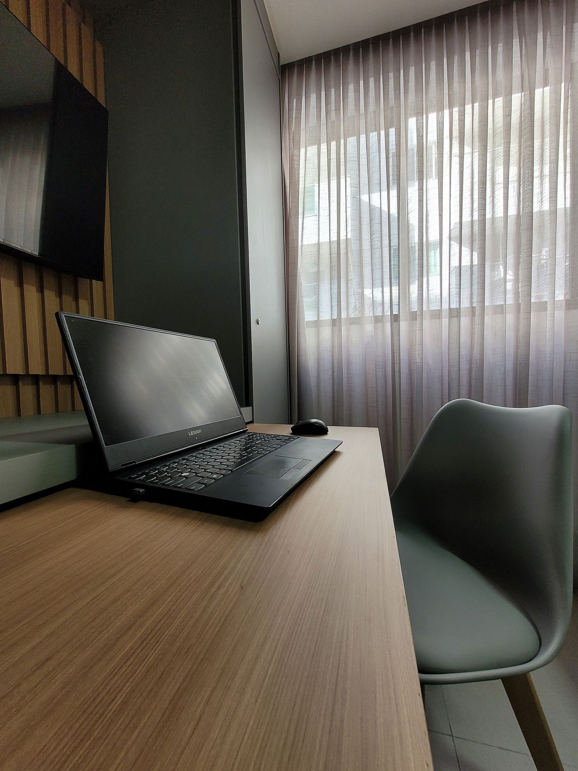 Para quem precisa trabalhar durante a estadia, o ambiente também oferece estrutura adequada, garantindo praticidade e conexão de qualidade.