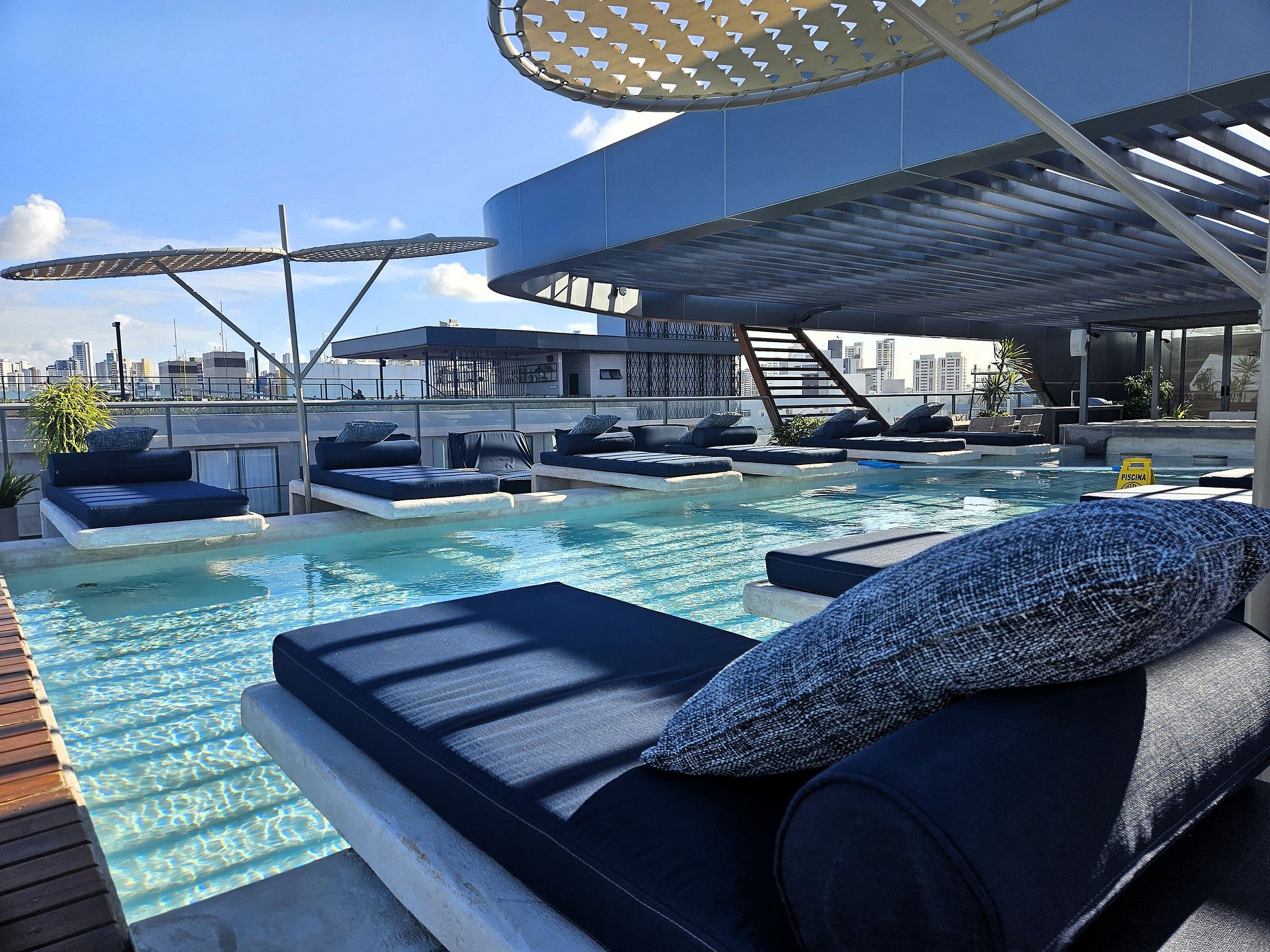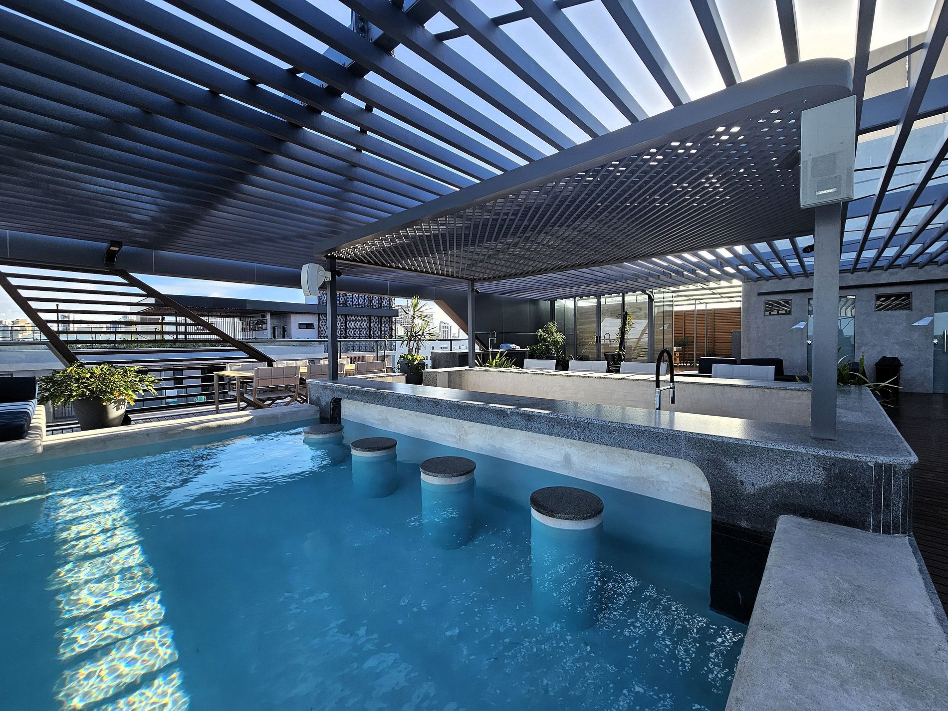 Piscina no Rooftop com Churrasqueira: um espaço incrível para relaxar e curtir a vista panorâmica.