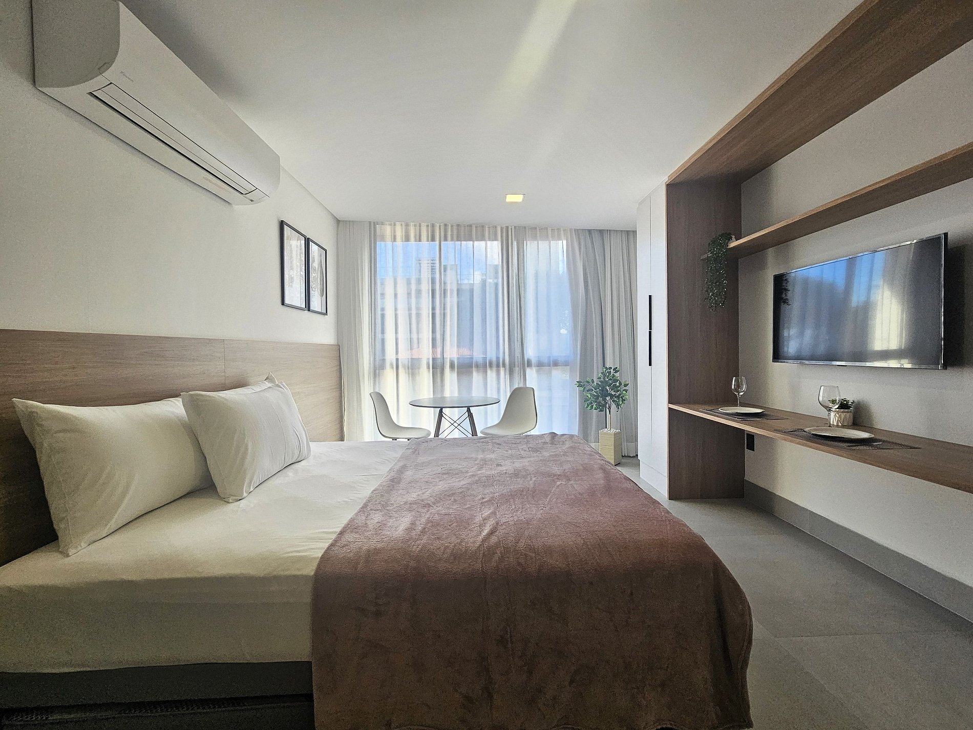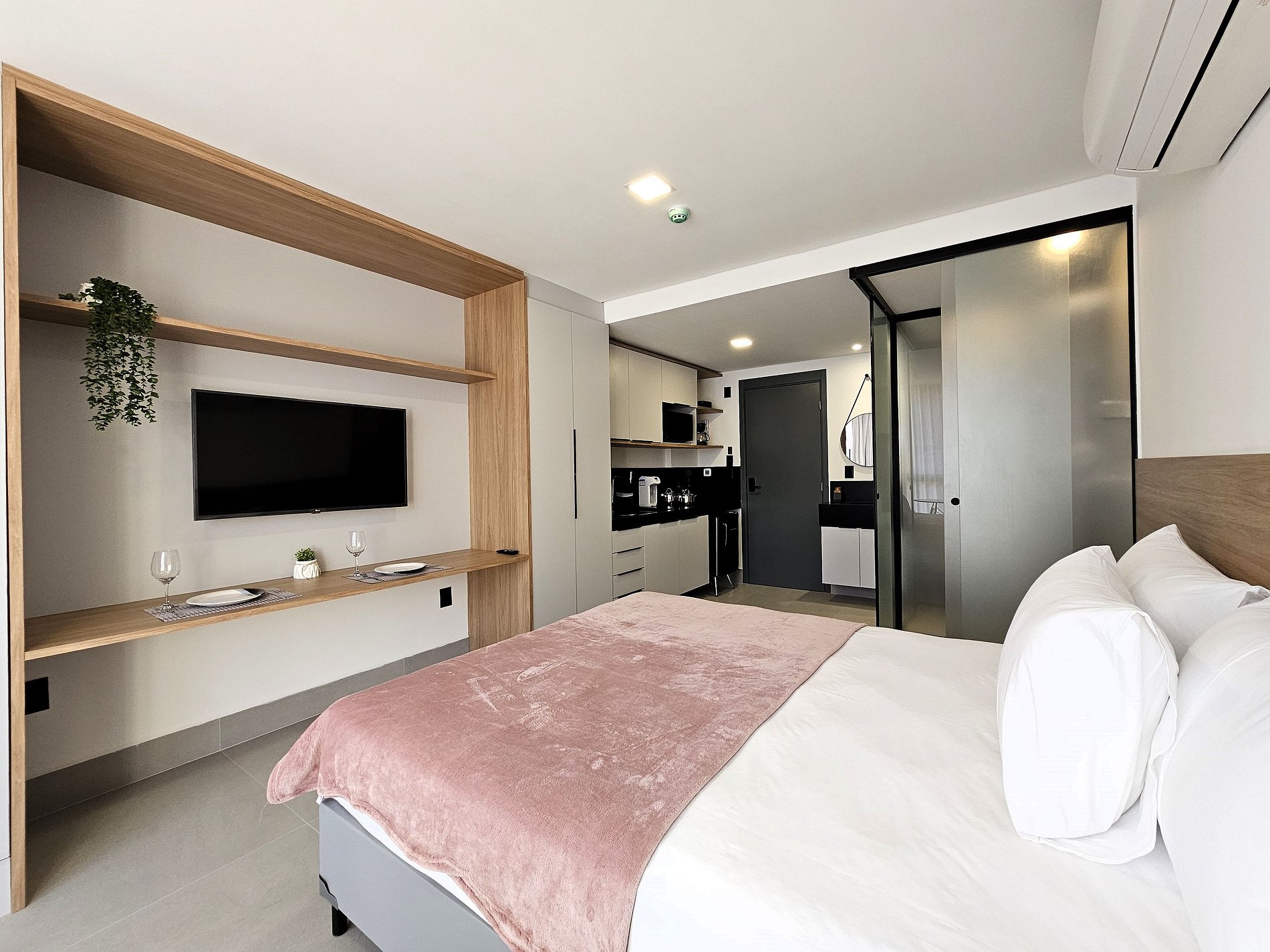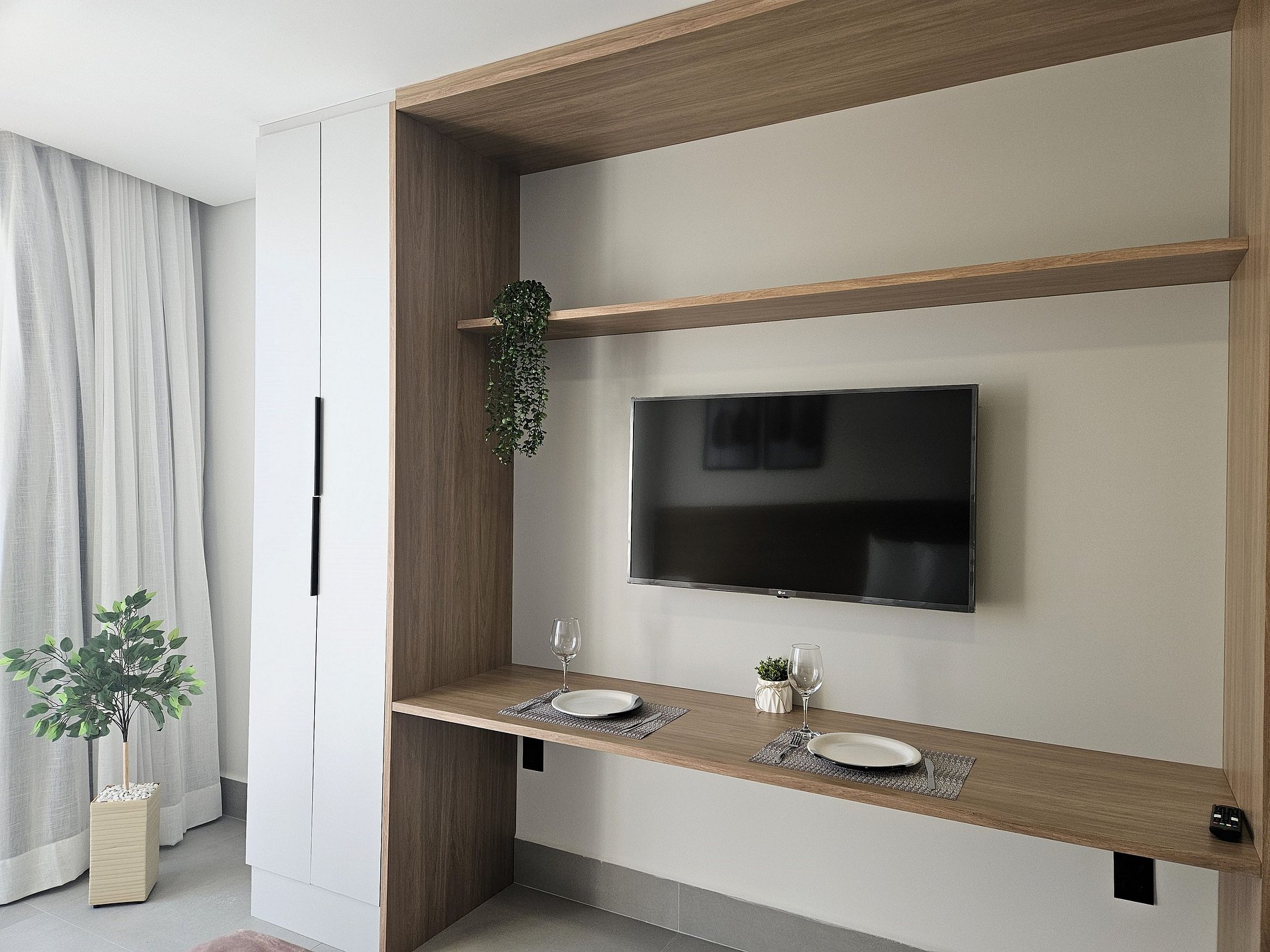 Este flat está totalmente equipado para hospedagem de curta ou longa duração, proporcionando uma estadia completa e sem preocupações.
