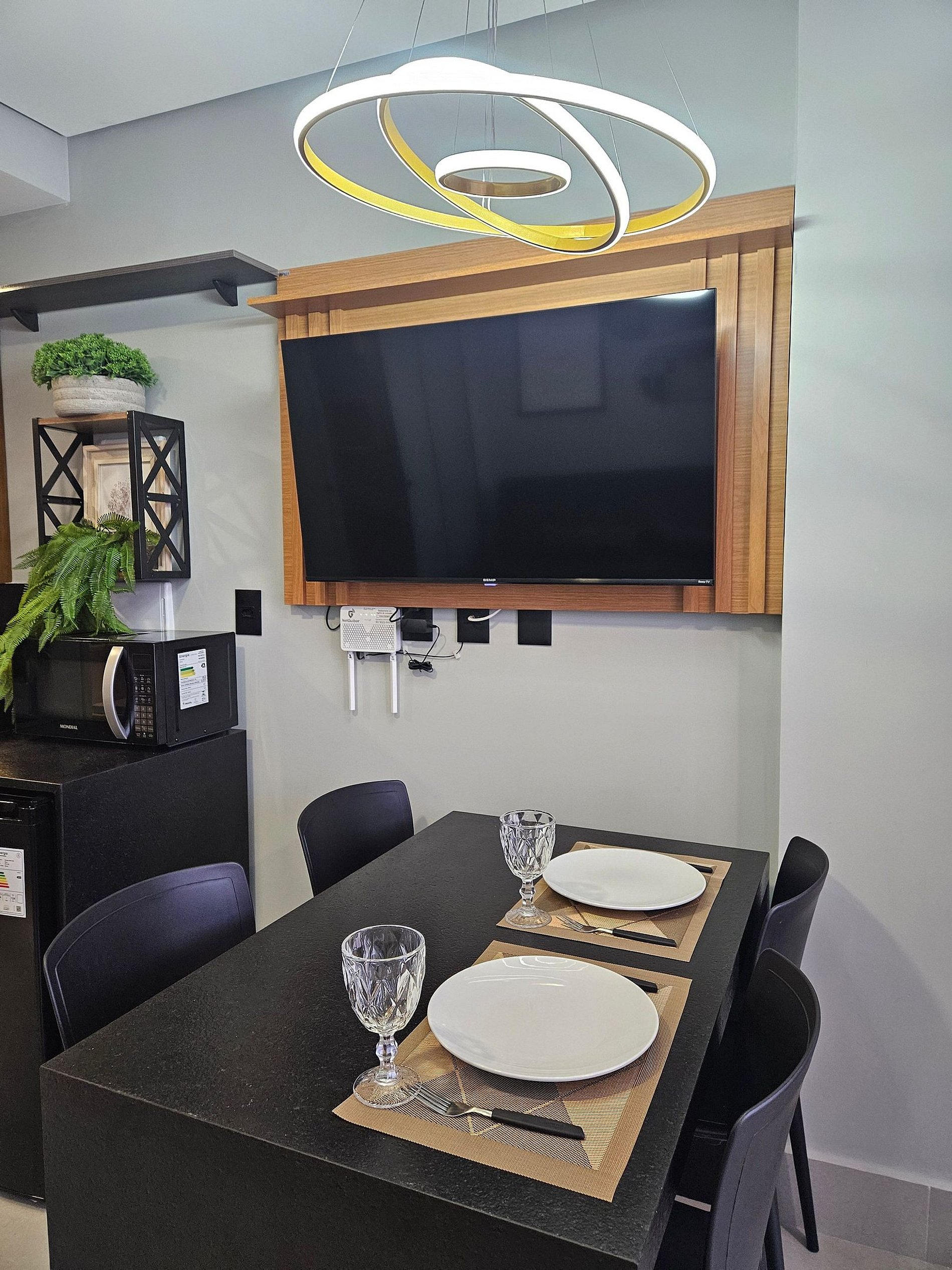 Este flat está totalmente equipado para hospedagem de curta ou longa duração, proporcionando uma estadia completa e sem preocupações.