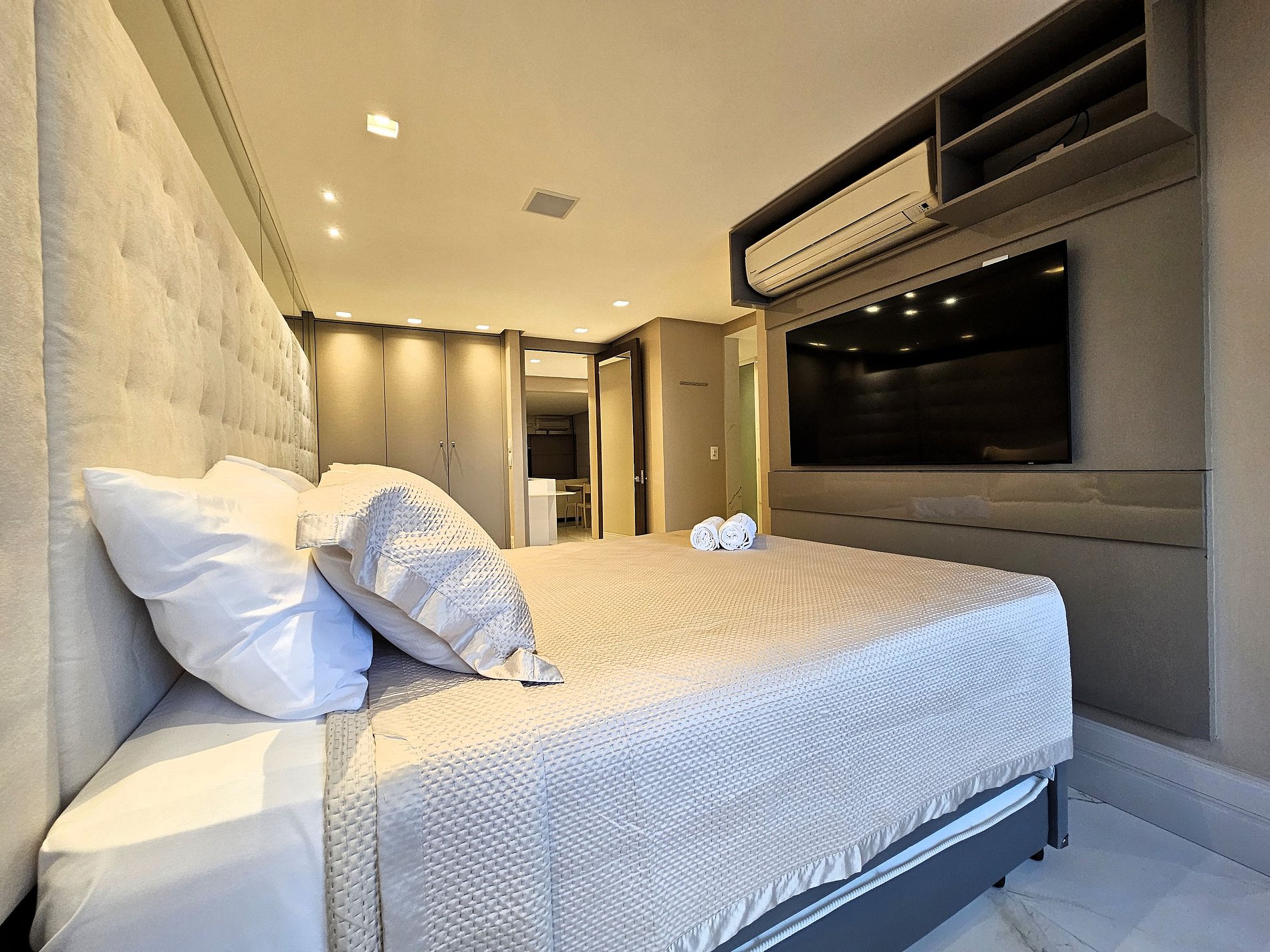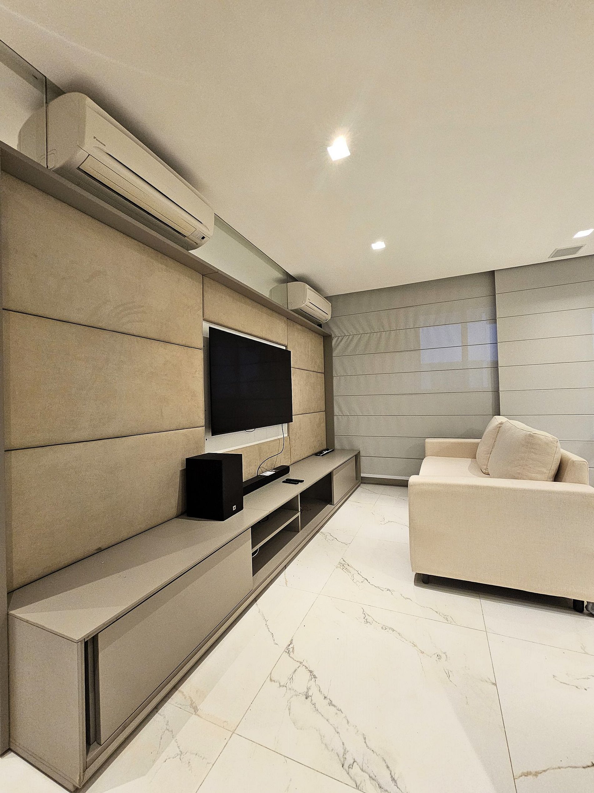 Todos os ambientes são climatizados com ar condicionado e possuem persianas elétricas, garantindo conforto, praticidade e privacidade durante toda a sua estadia.