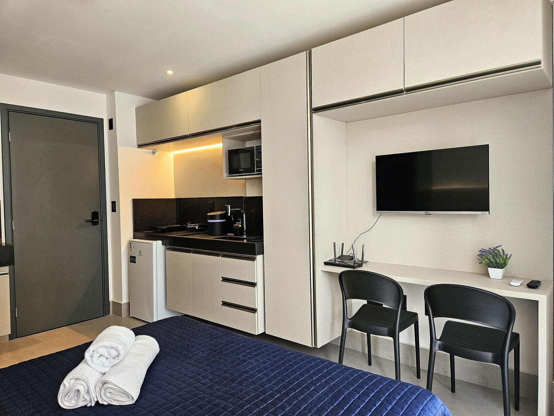 Este flat está totalmente preparado para hospedagens de curta ou longa duração, garantindo uma estadia prática, confortável e sem preocupações.