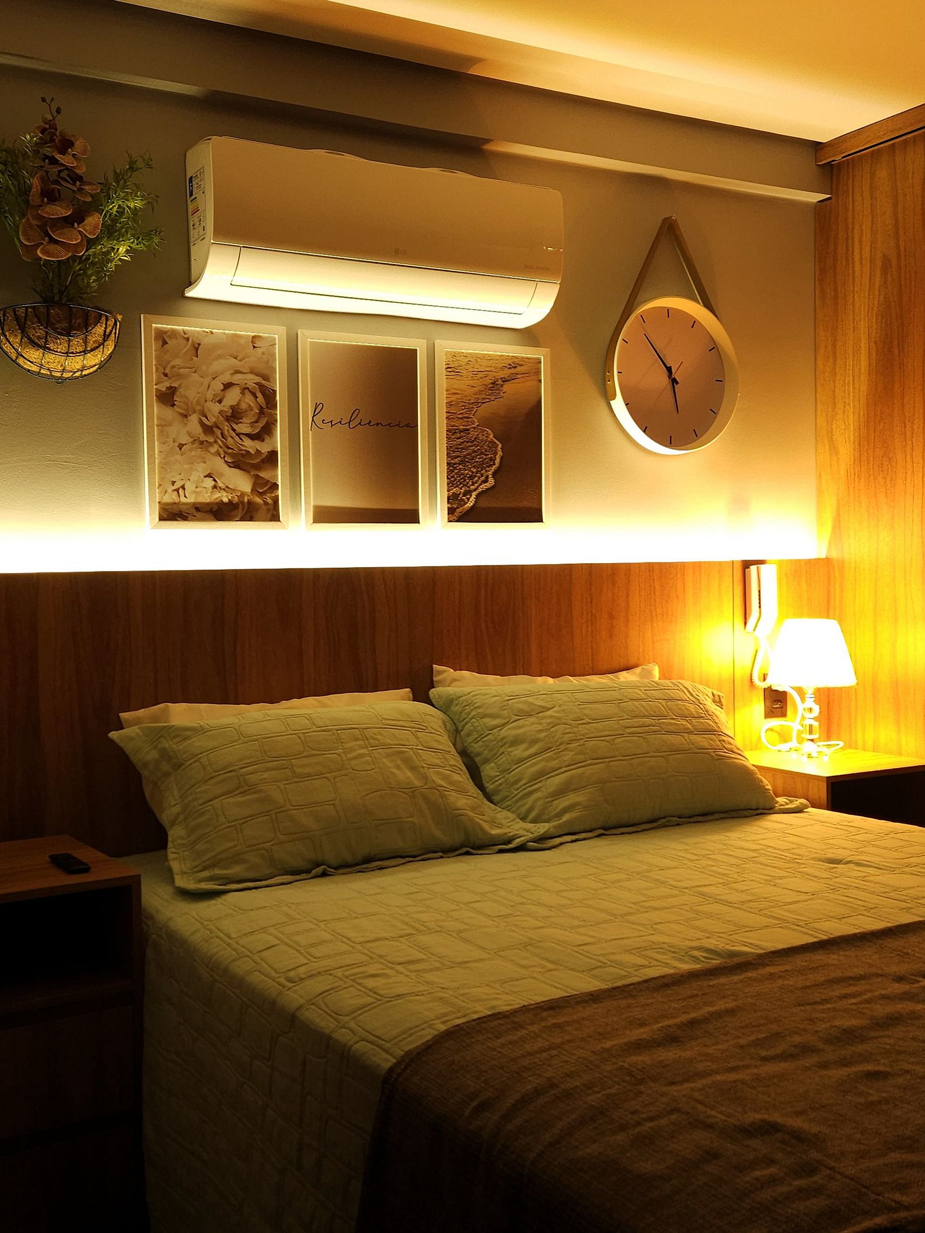 A acomodação conta com uma cama Queen e dois colchões de densidade D33 para acomodar toda a família. Além disso, oferece Smart TV 43', ar condicionado, armário para roupas, banheiro, ferro de passar, tábua de passar roupas, secador de cabelos 2000 Watts e varal para roupas.