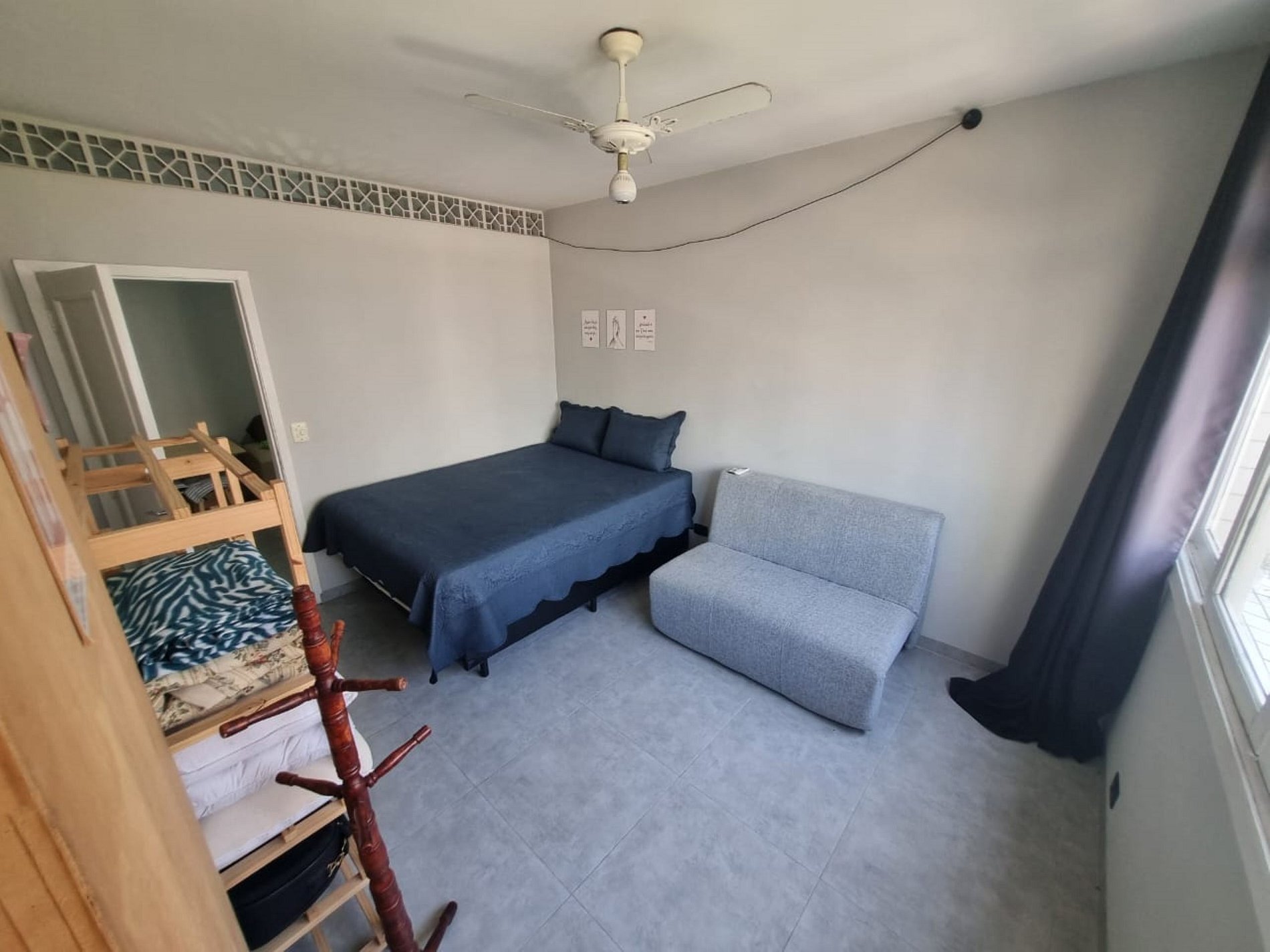 Apto bem-localizado com duas entradas, uma pela praia e outra pela rua de trás, é a principal do apartamento e mais tranquila. Acomoda 4 pessoas.