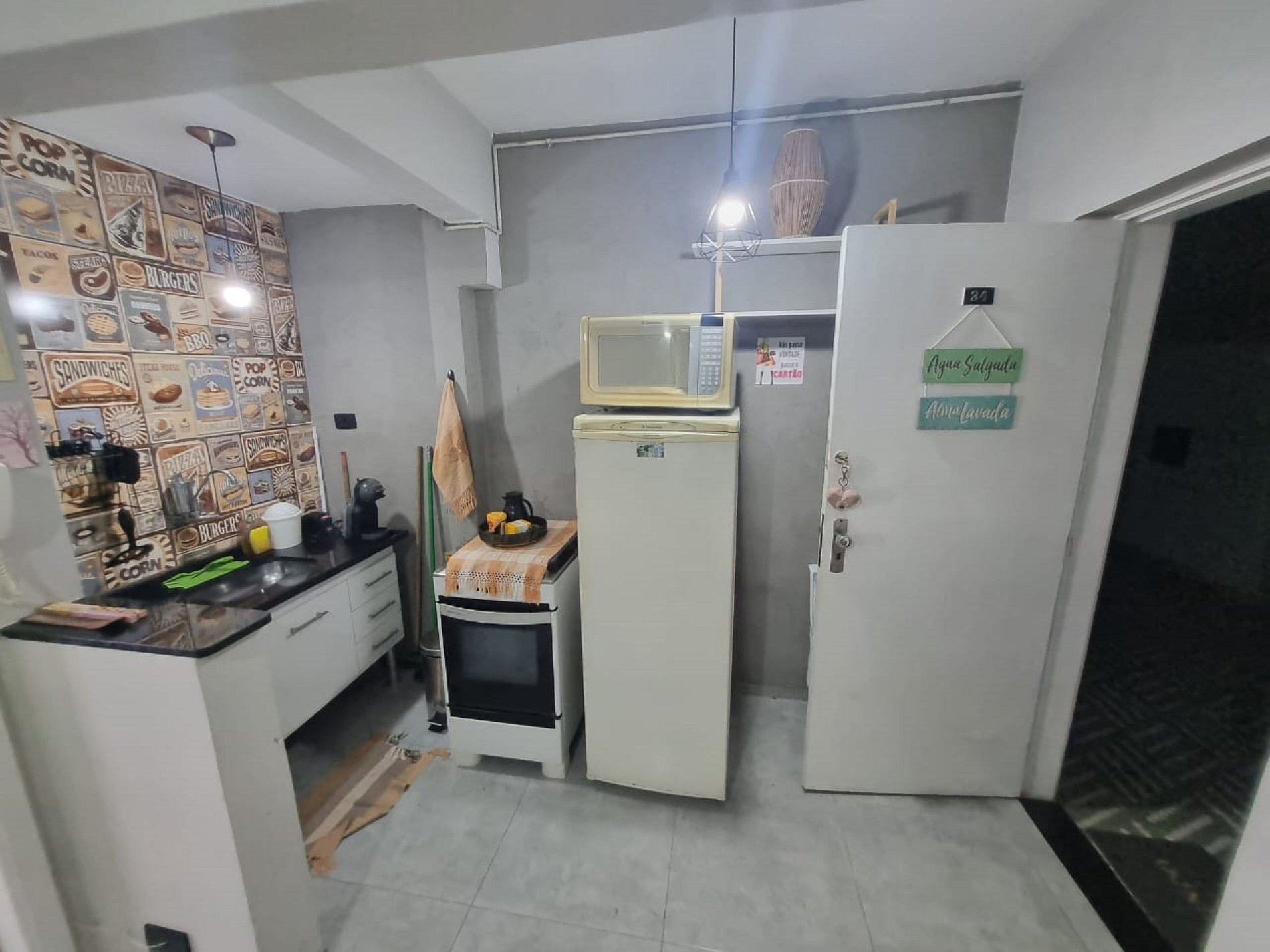 A cozinha inclui geladeira, liquidificador, máquina café Dolce Gusto e fogão a gás, com panelas e utensílios para preparar suas refeições com toda comodidade. Caso necessite trabalhar, temos um espaço equipado com internet cabeada de alta velocidade. Possui cama casal e sofá cama, TV, Ar-condicionado, ferro de passar, secador de cabelo, guarda-roupa e banheiro com box e ducha quente. Este apartamento está totalmente equipado para hospedagem de curta ou longa duração, proporcionando uma estadia completa e sem preocupações.