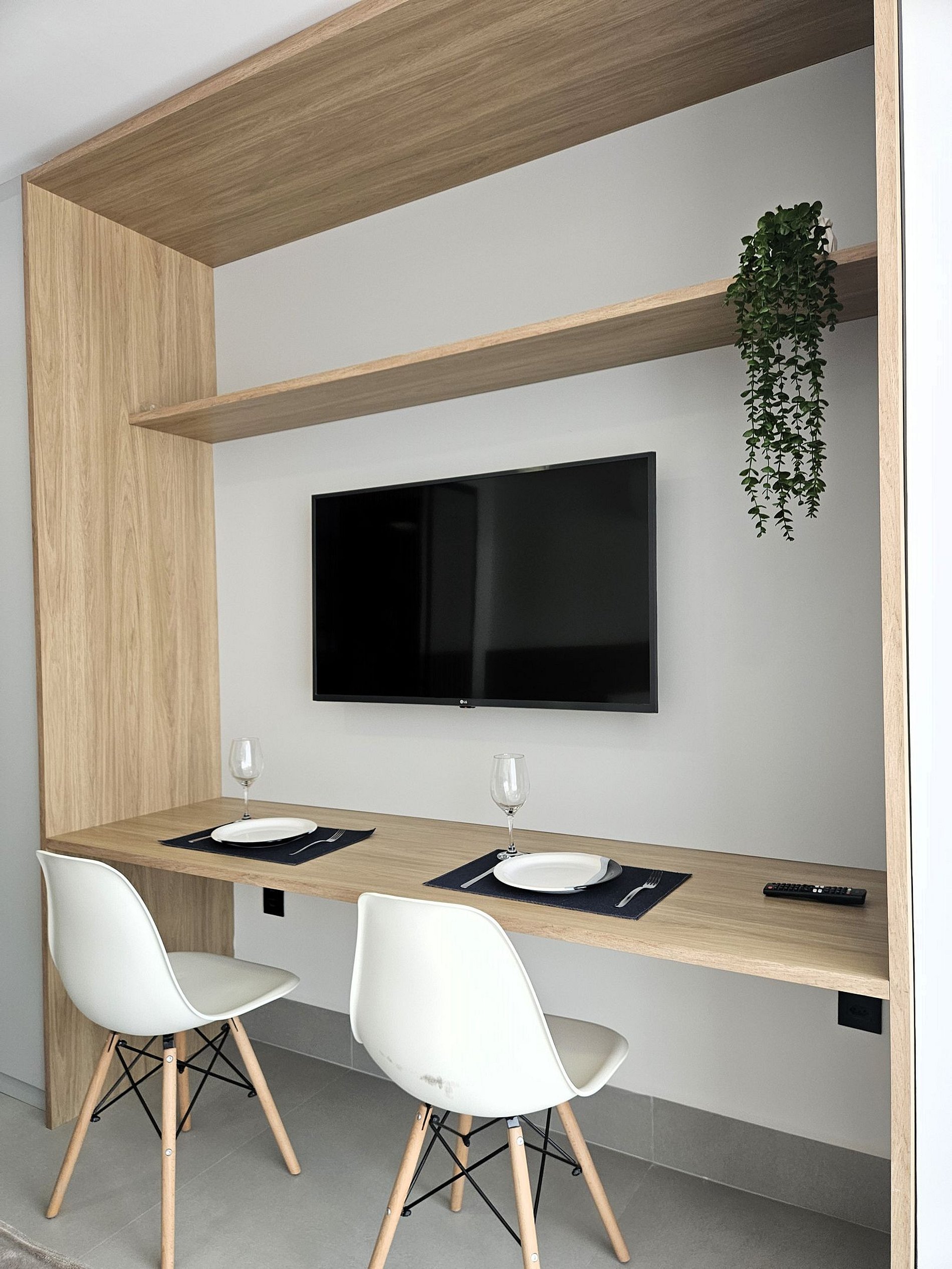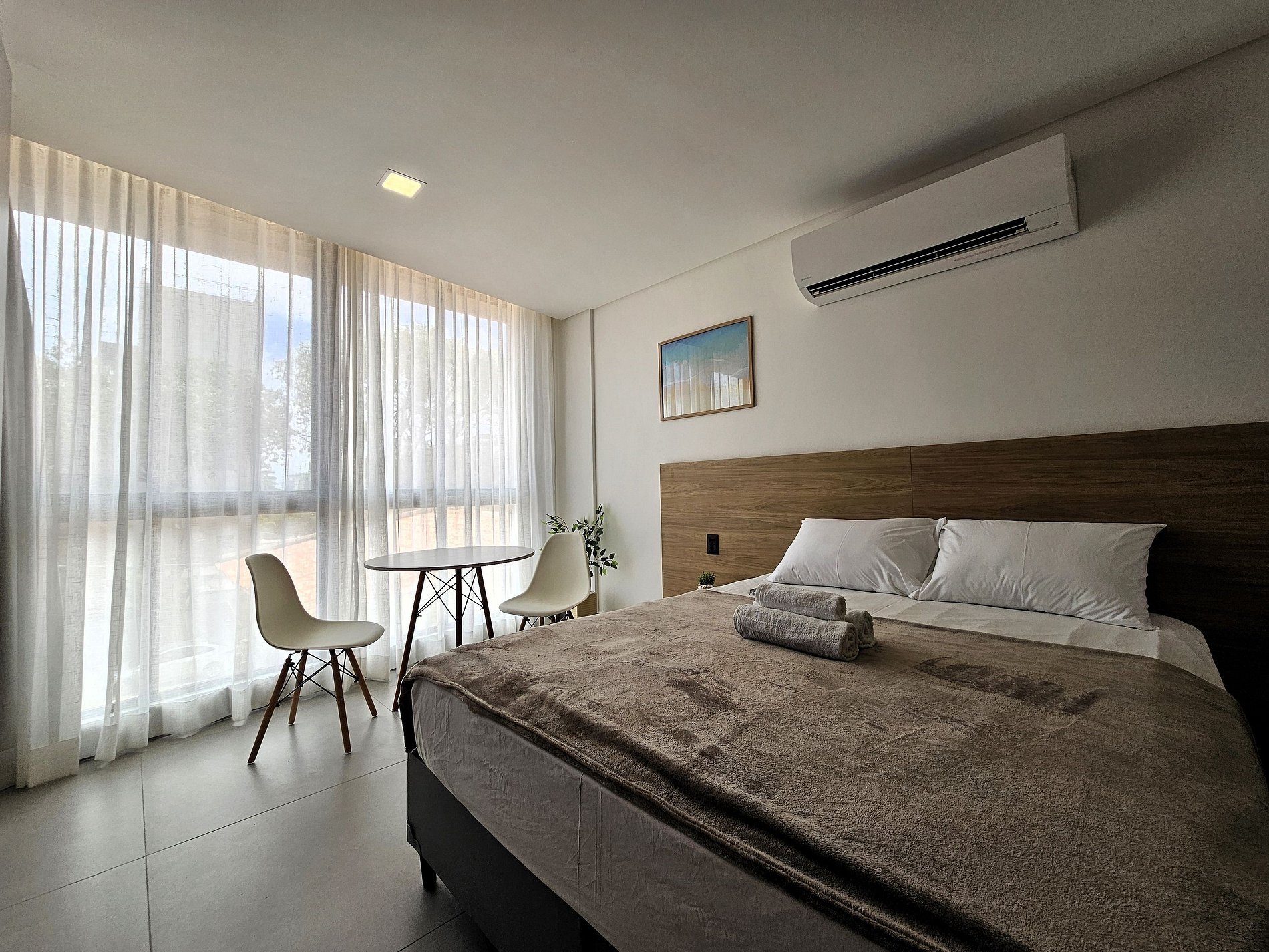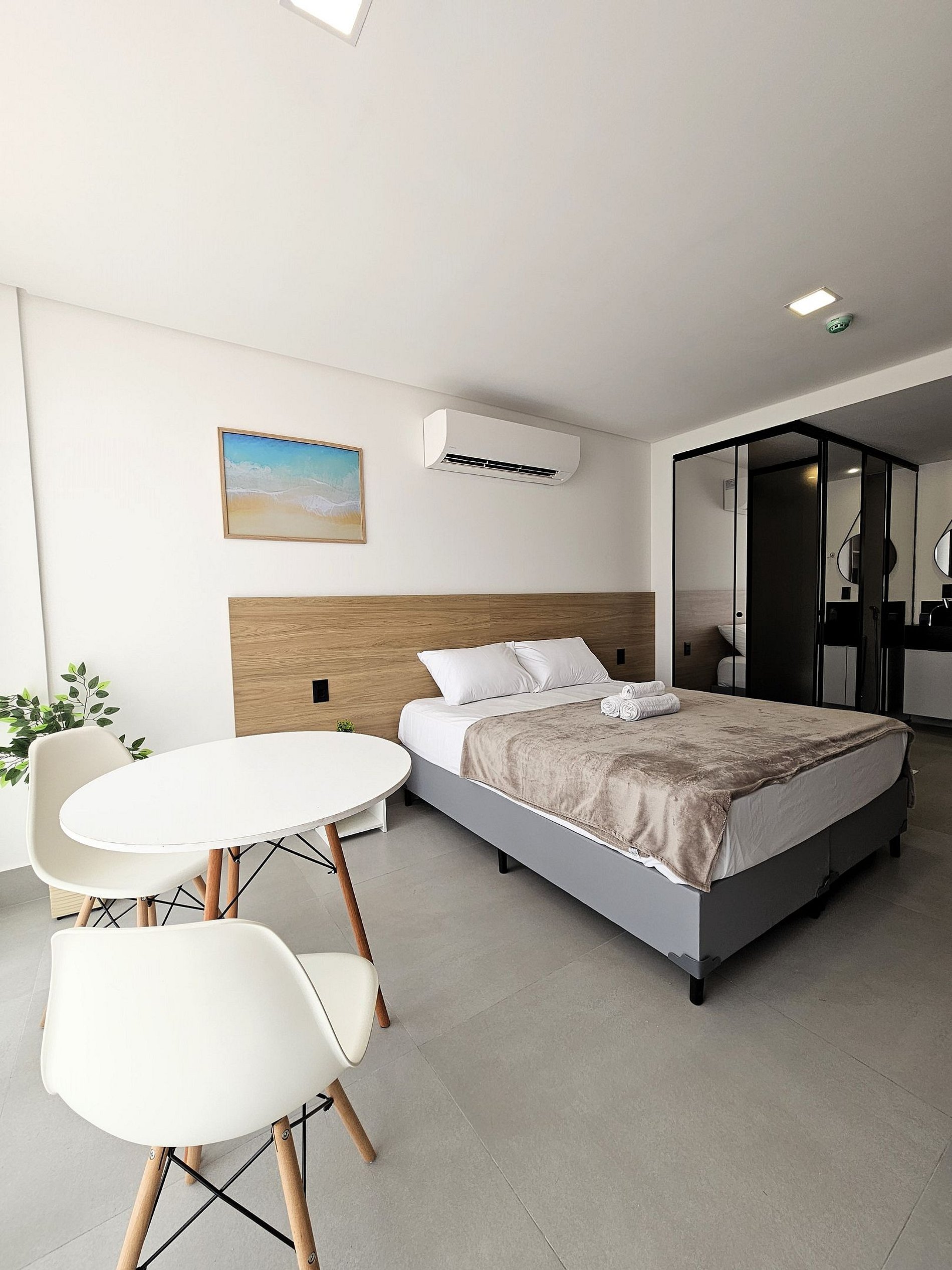Este flat está totalmente equipado para hospedagem de curta ou longa duração, proporcionando uma estadia completa e sem preocupações.