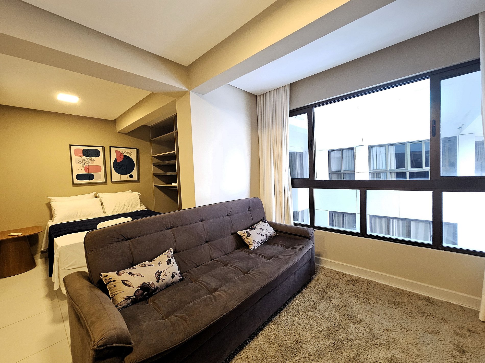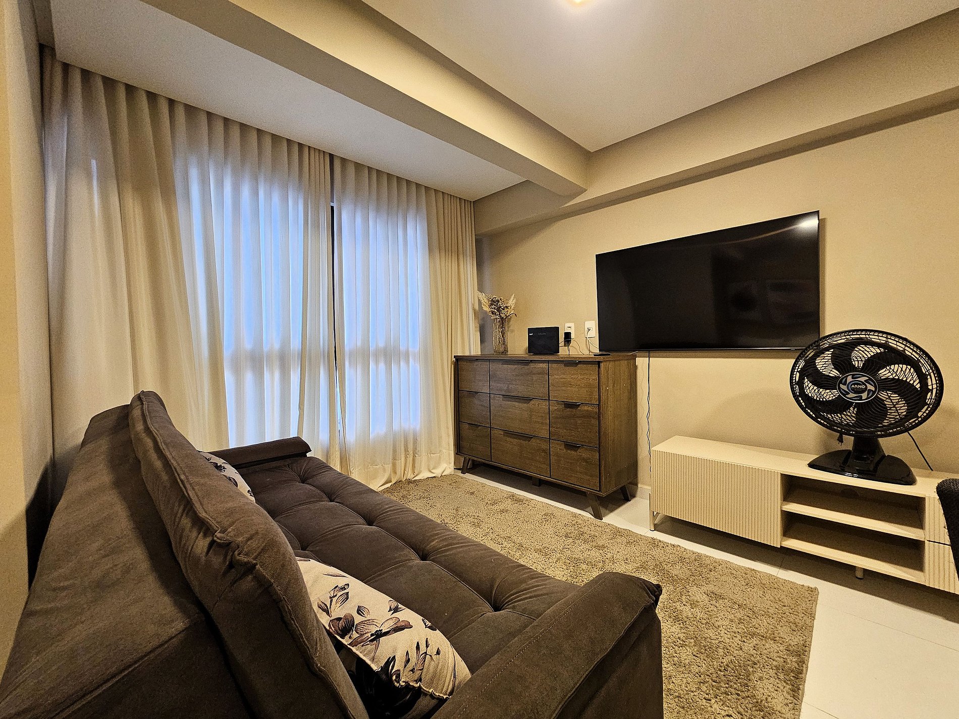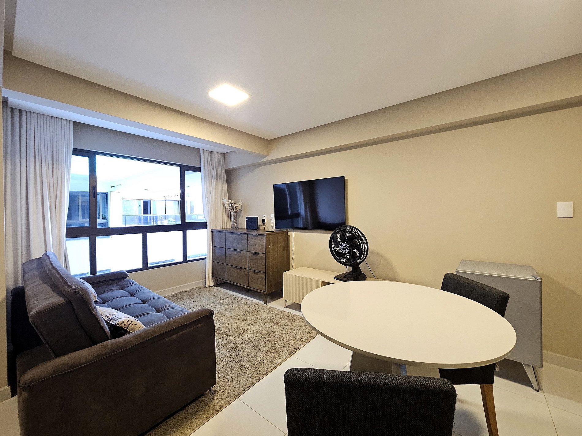 A acomodação conta com uma cama Casal e um Sofá-Cama, perfeito para receber até quatro pessoas com conforto. Possui também TV Smart e ar condicionado. Todos os ambientes são climatizados com ar condicionado e persianas, garantindo conforto, praticidade e privacidade durante toda a sua estadia.