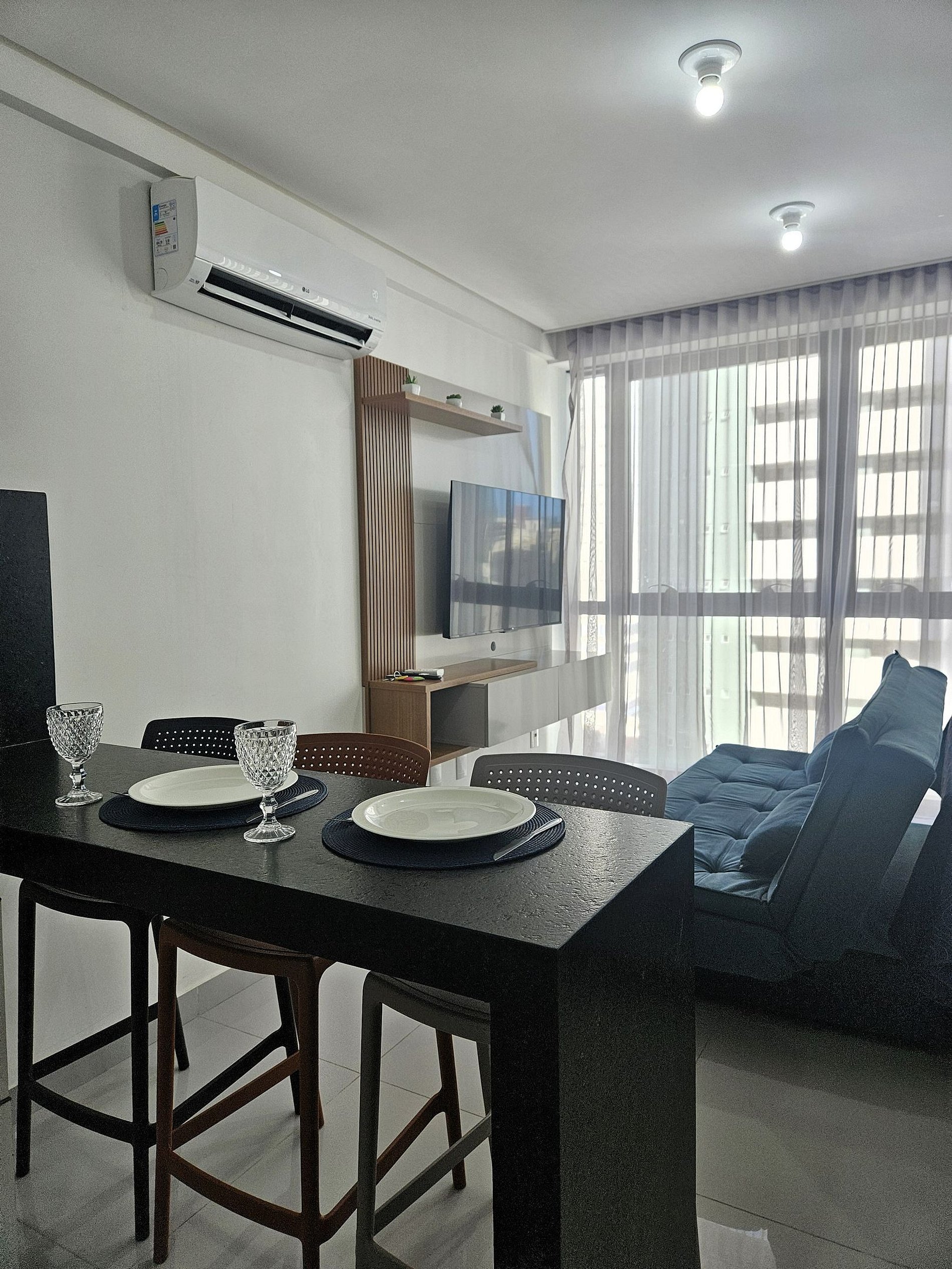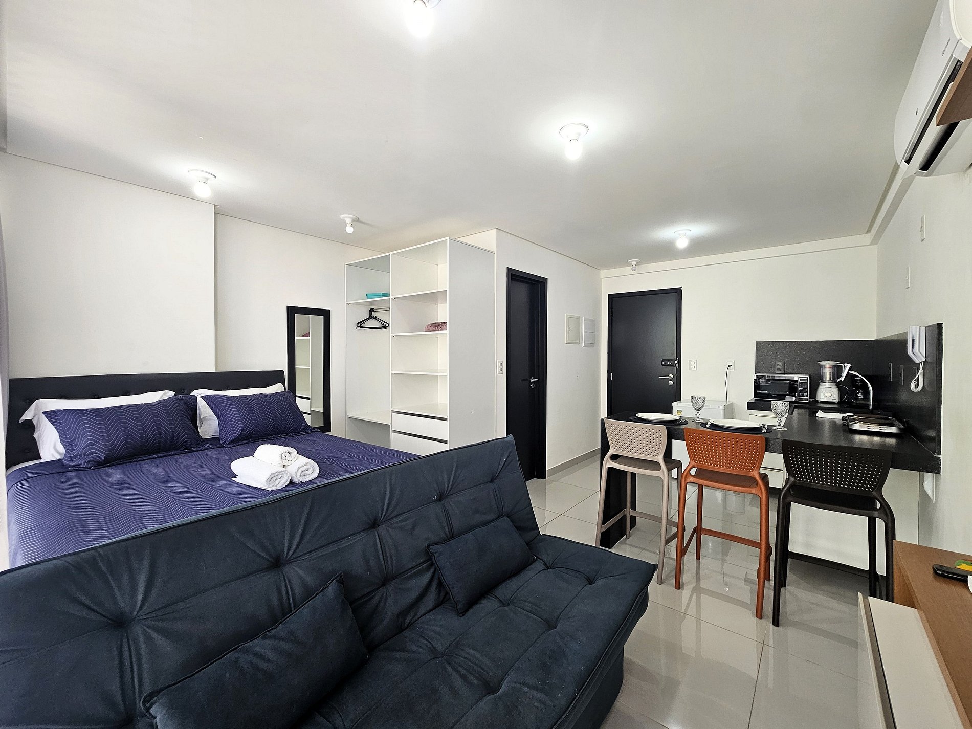 O apartamento é completo, climatizado, possui cozinha equipada, área de trabalho e Wi-Fi rápido.