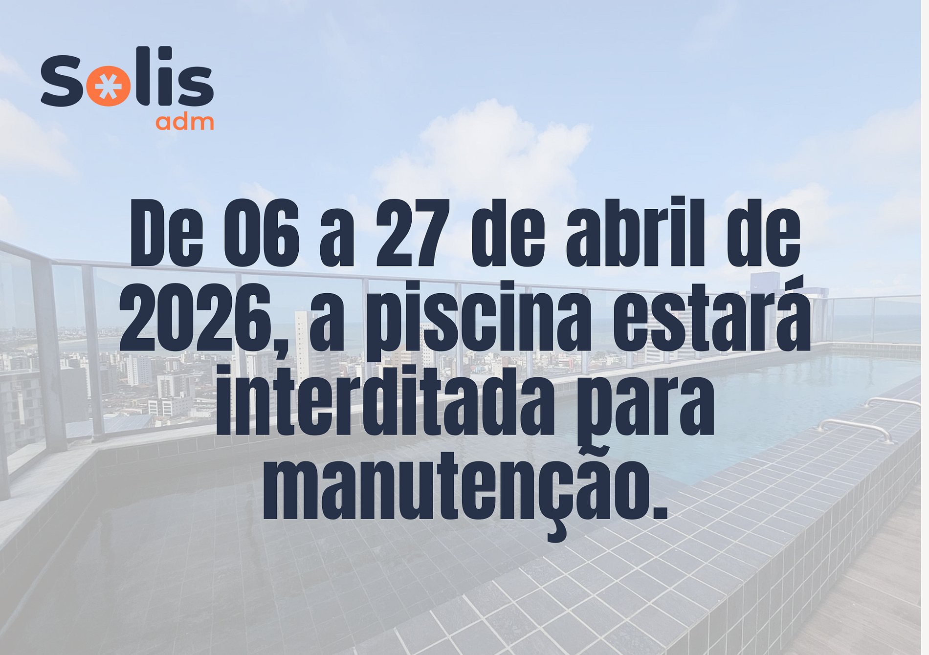 De 06 a 27 de abril de 2026, a piscina estará interditada para manutenção;