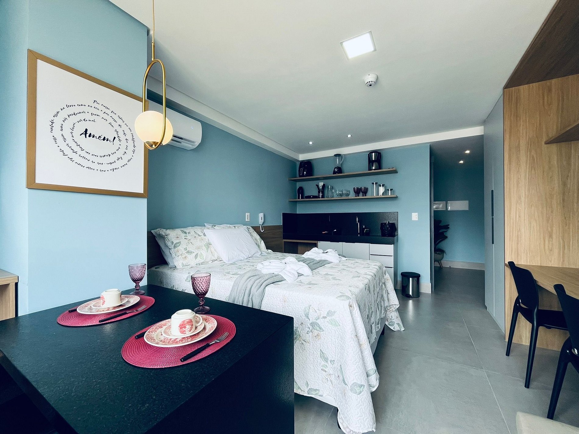 Este studio espaçoso é ideal para casais ou famílias e oferece todo o conforto para uma estadia agradável. A acomodação conta com uma cama Casal e um Sofá-Cama, Smart TV 43', ar condicionado, armário para roupas e banheiro privativo.