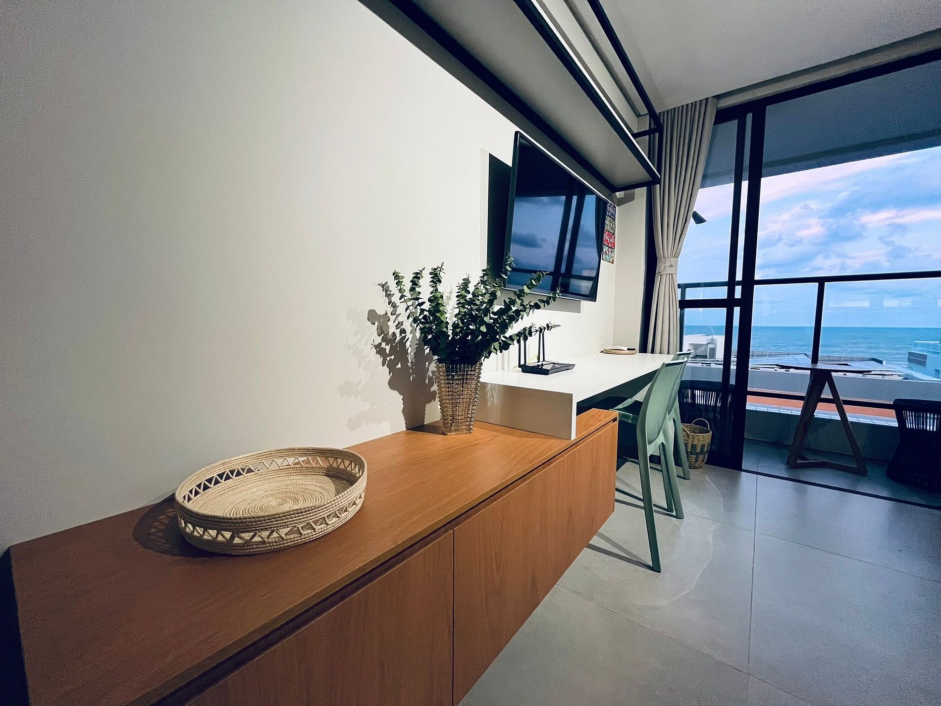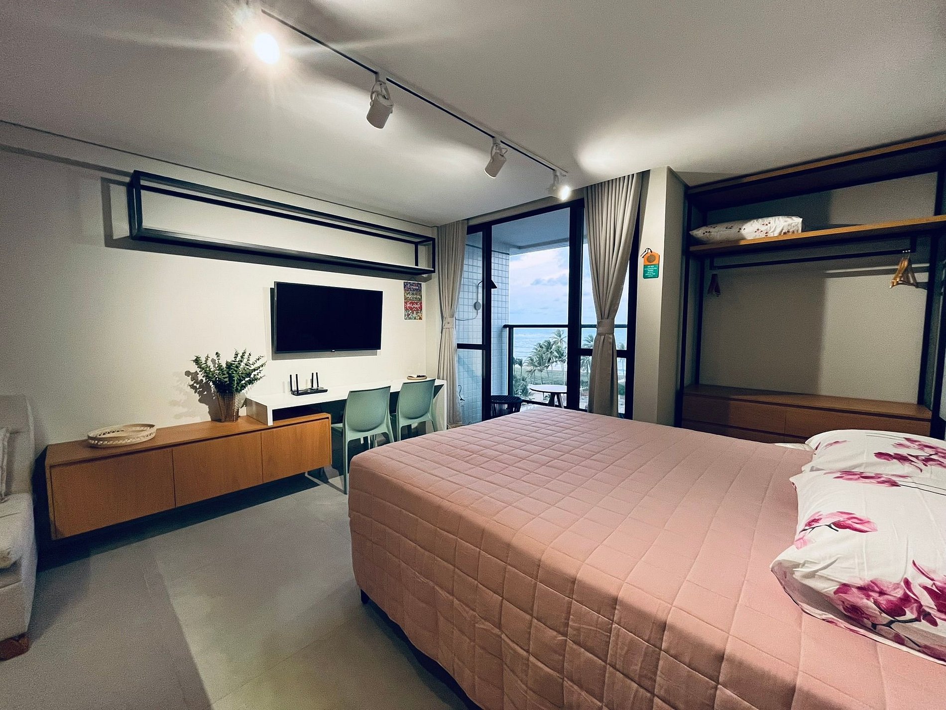 Com uma bela varanda equipada com mesa e cadeiras, este espaço é ideal para aproveitar a brisa e a vista do mar. A acomodação conta com uma confortável cama Queen e um Sofá-Cama, perfeito para acomodar até duas crianças ou um adulto. Além disso, oferece Smart TV de 43", ar condicionado, armário para roupas e banheiro privativo.