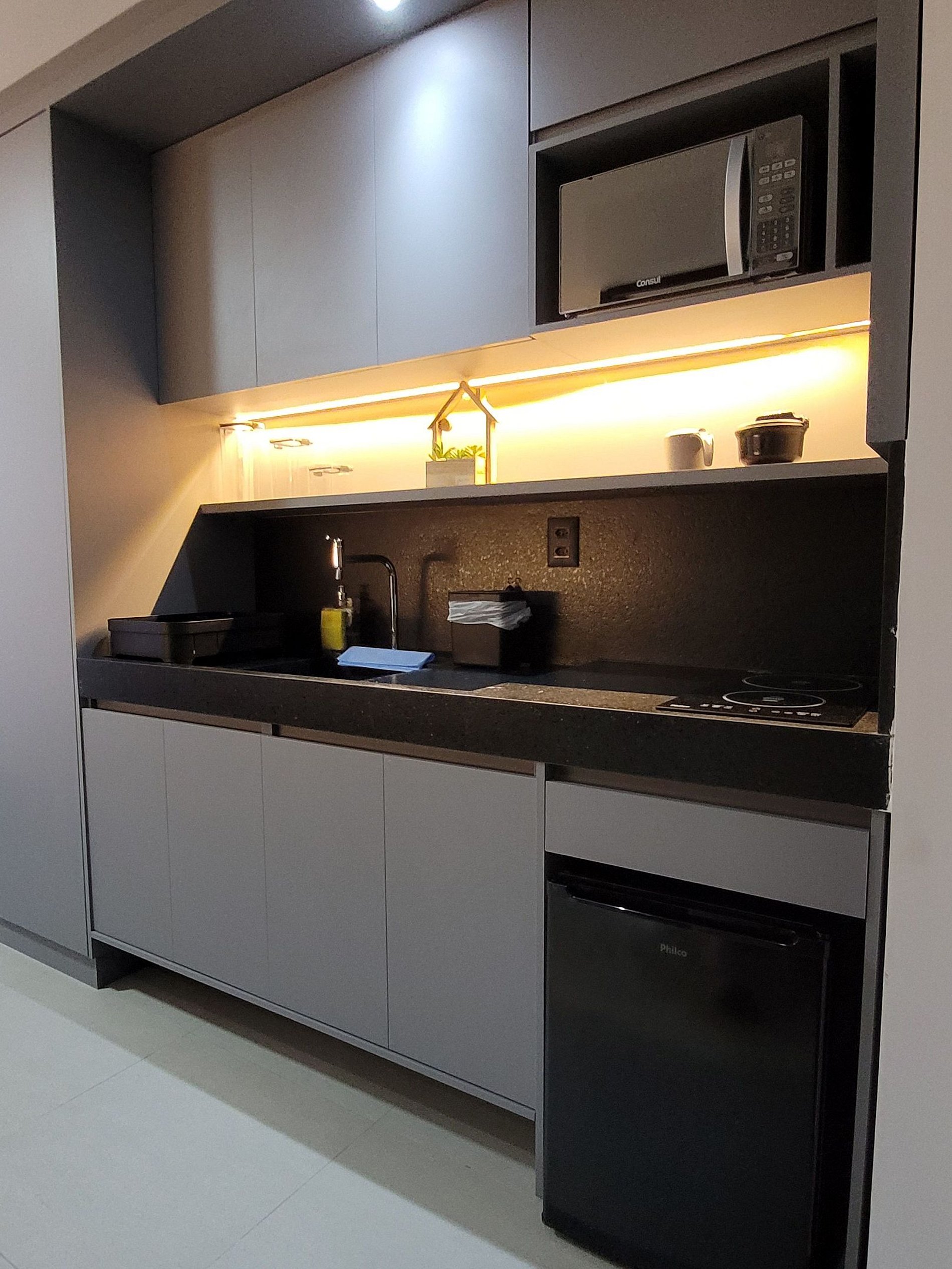 A cozinha foi planejada para trazer praticidade no dia a dia, enquanto o ambiente oferece tudo o que você precisa para relaxar ou manter sua rotina com comodidade.