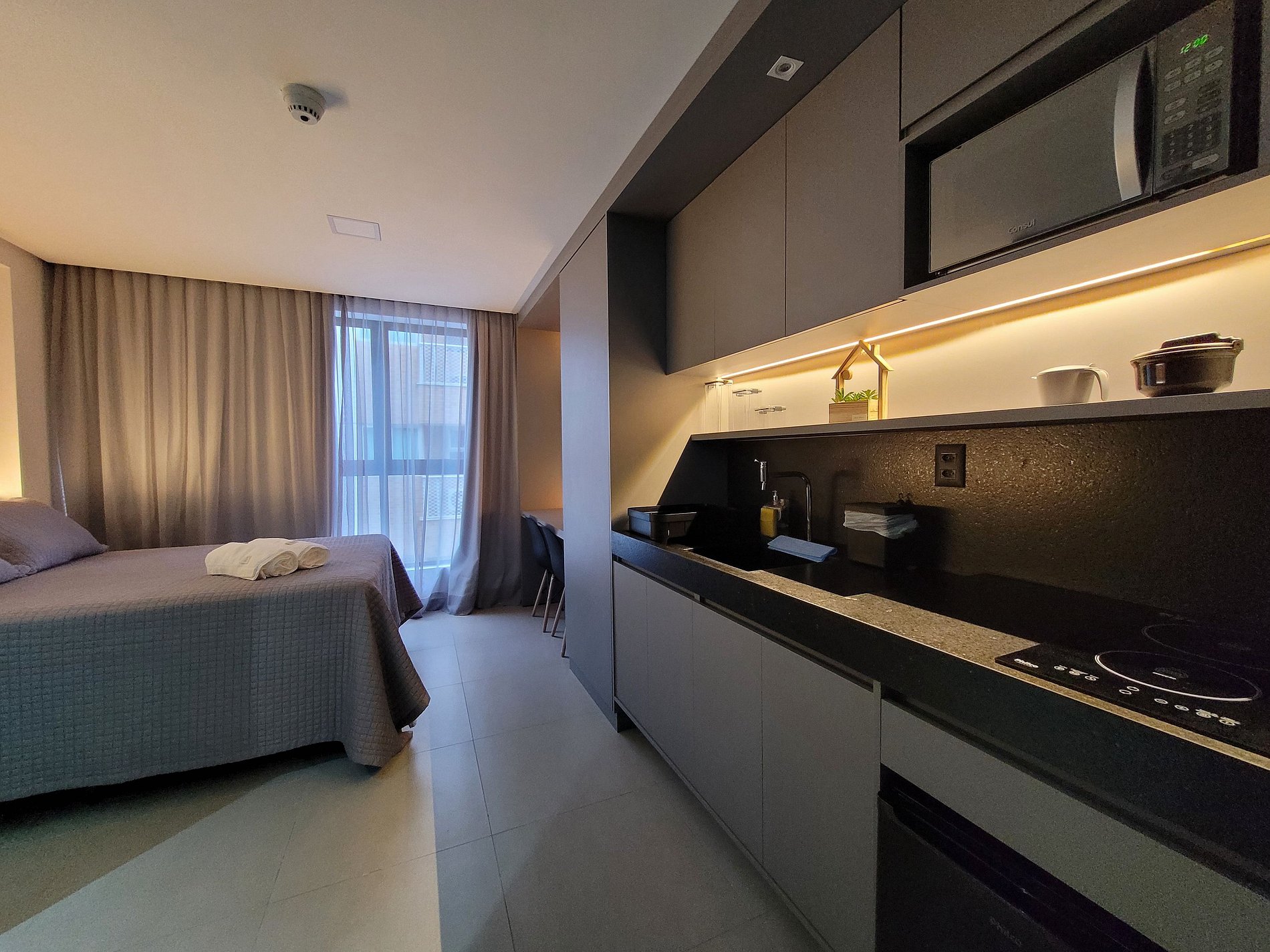 Um espaço moderno, funcional e pronto para te receber com conforto em qualquer tipo de estadia, seja a lazer ou a trabalho.