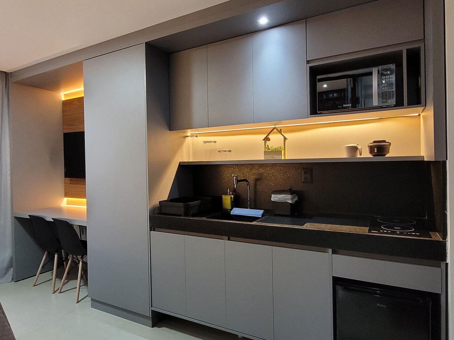 Um espaço moderno, funcional e pronto para te receber com conforto em qualquer tipo de estadia, seja a lazer ou a trabalho.