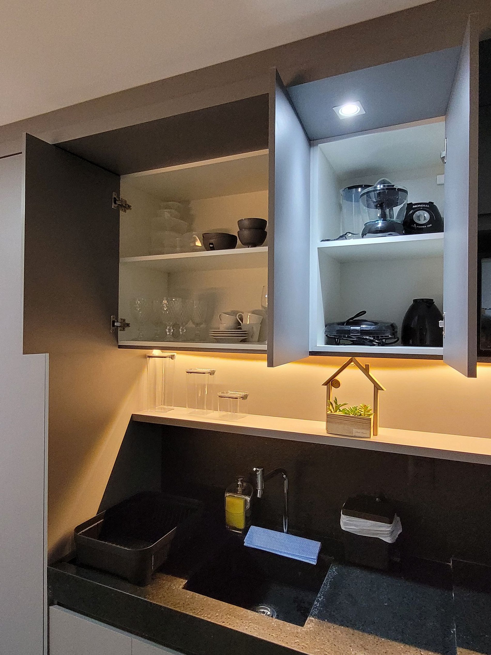 A cozinha foi planejada para trazer praticidade no dia a dia, enquanto o ambiente oferece tudo o que você precisa para relaxar ou manter sua rotina com comodidade.